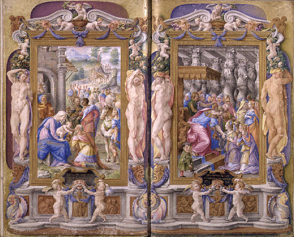 Farnese Hours:Adoration of the Magi and Solomon Adored by the Queen of Sheba