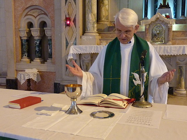 Esperanto: Germana katolika pastro kaj teologo Peter Knauer celebranta sanktan meson en esperanto en la preĝejo Jesús de Miramar en Havano ( Kubo).