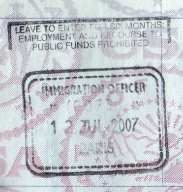 UK passport entry stamp from Paris for travel in the Channel Tunnel to London |