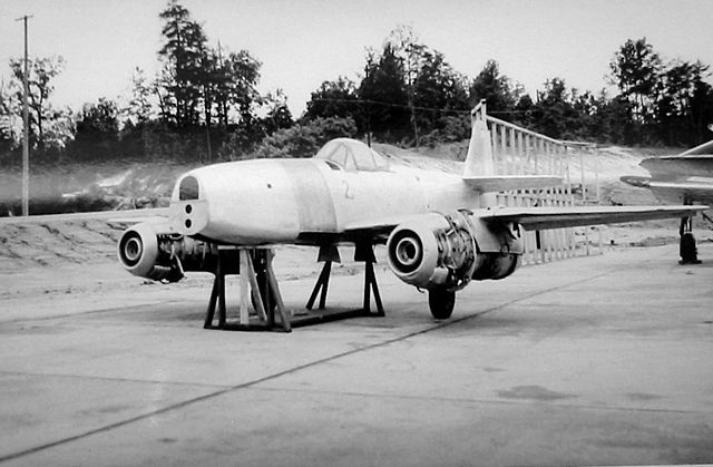 A WWII Japanese jet fighter Kikka in the Navy Base of Patuxent River, Maryland. 1946. US Navy photograph displayed in the Tokyo National Science Museum, Ueno.