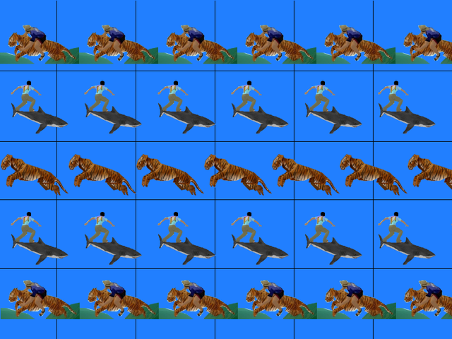 - Description: This autostereogram displays repeated patterns on three different planes by spacing them at different intervals.