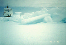 An icebreaker navigates through sea ice. From http://southport.jpl.nasa.gov/polar/iceinfo.html