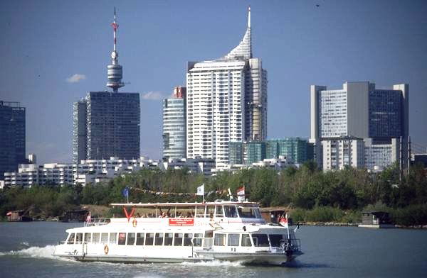 Im Hintergrund UNO-City, Donauturm und Wohngebäude