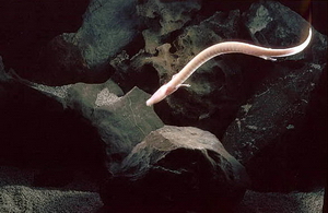 Olm ( Proteus anguinus) in its natural habitat.