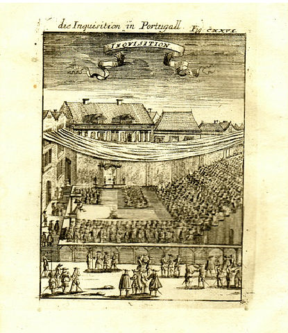 1685 - Inquisição Portugal.jpg "Die Inquisition in Portugall" - Original Miniature Copper Engraving from the book: "Description de L'Univers, Contenant les Différents Systèmes de Monde, Les Cartes Générales & Particulières de la Géographie Ancienne & Moderne."