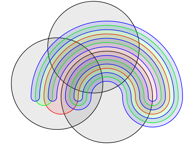 English: A Venn diagram with n = 6. I wrote a program to draw these: en:User:Kopophex/venn.ml
