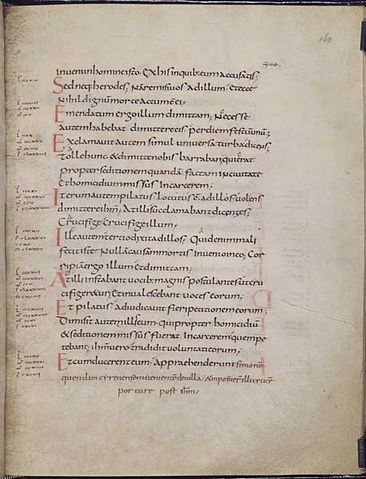 Español: Folio 160v de la Vulgata, Evangelio de Lucas, 23:15–26. Está escrito en minúscula carolingia.