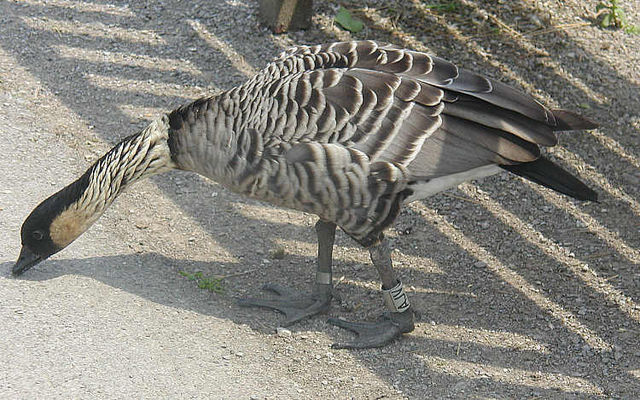 Branta sandvicensis English: A Nene (also known as Nēnē and Hawaiian Goose) at WWT Slimbridge, Gloucestershire, England.