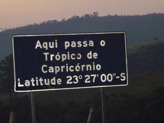 Trópico de Capricórnio. Linha imaginária que passa pelo Estado de São Paulo. Esta foto mostra o ponto de passagem no município de Santana de Parnaíba. WARNING: This was true for 1917; the Tropic is presently (Epoch 2011) at 23º 26' 16" - See Useful constants |