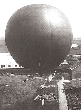 Photograph from the 1890s of Swedish polar explorer S. A. Andrée's balloon Svea, with which he practiced his "drag rope" steering technique before his disastrous North Pole expedition with the balloon the Eagle in 1897. The image has been downloaded from http://www.zwoje-scrolls.com/zwoje41/text08p.htm and then cropped.