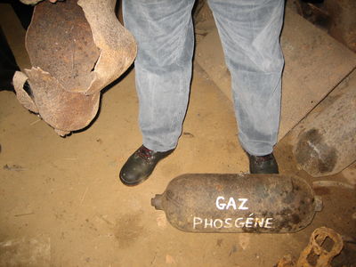 Photograph of Phosgene gas bomb from the British Livens Projector unearthed at the Somme, 2006 |