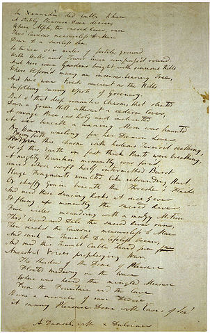 English: Draft of Samuel Taylor Coleridge's poem Kubla Khan
