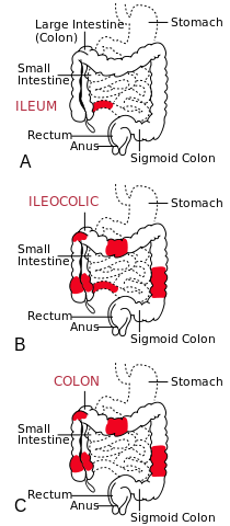 Schematic of patterns of disease in Crohn's disease (CD). Based on diagram of human intestine in GFDL. |