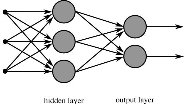 Diagram of a multi-layer feedforward artificial neural network. English: A Neural network with two layers.