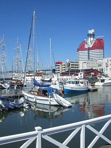 Deutsch: Flussufer mit Yachten in Göteborg, Schweden.