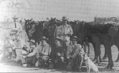 Bulawayo scouts 1893.jpg Bulawayo, during Matabele War. Left to right: (standing) Pearl "Pete" Ingram (American), Capt. Charles White, Art Cummings, Stocker, Moffat, Bob Bain (Canadian), Frederick Russell Burnham (American), and Maurice Gifford.