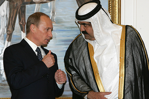 Русский: ДОХА. С Эмиром Катара шейхом Хамадом бен Халифой аль-Тани.