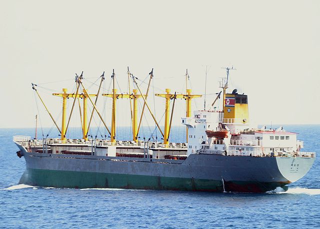 English: North Korean cargo vessel Dai Hong Dan transits off the coast of Somolia after the ship was hijacked by pirates Oct. 29. The crew was able to regain control of their vessel before contacting guided-missile destroyer USS James E. Williams (DDG 95) for medical assistance.