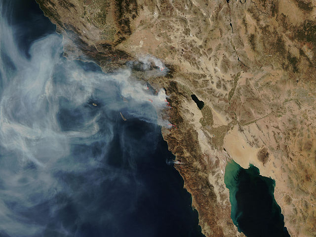 en:NASA en:MODIS Rapid Response System image showing en:California wildfires of October 2007 on en:October 24