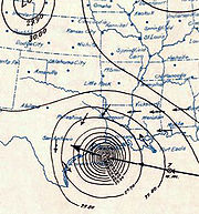 | Surface weather analysis of the hurricane on September 8, just before landfall. | |