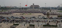 The State Council declared a three-day period of national mourning for the quake victims starting from May 19, 2008; the PRC's National Flag and Regional Flags of Hong Kong SAR and Macau SAR were raised at half mast. It is the first time that a national mourning period had been declared for something other than the death of a state leader, and many have called it the biggest display of mourning since the death of Mao Zedong. At 14:28 CST on May 19, 2008, a week after the earthquake, the Chinese public held a moment of silence. People stood silent for three minutes while air defense, police and fire sirens, and the horns of vehicles, vessels and trains sounded. Cars on Beijing's roads came to a halt. People spontaneously burst into cheering "China jiayou" and "Sichuan jiayou" afterwards.