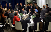 The 2009 United Nations Climate Change Conference, commonly known as the Copenhagen Summit, was held at the Bella Centre in Copenhagen, Denmark, between 7 December and 18 December. The conference included the 15th Conference of the Parties (COP 15) to the United Nations Framework Convention on Climate Change and the 5th Meeting of the Parties (MOP 5) to the Kyoto Protocol. According to the Bali Road Map, a framework for climate change mitigation beyond 2012 was to be agreed there.