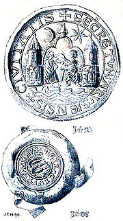 The city was mentioned for the first time by Adam of Bremen who stated that "Reginbrand, bishop of the church of Aarhus (Harusa)" participated in a church meeting in the city of Ingelheim in Germany.