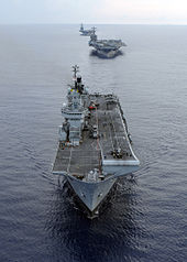 - Juan Carlos I (L61): 27,000 tonne, Specially designed multipurpose strategic projection ship made to operate primarily as a STOVL carrier but also has a well deck and facilities to operate partly or fully as a amphibious assault ship depending on mission, launched in 2008, commissioned 30 September 2010.
