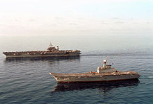 - USS Peleliu (LHA-5)* a 40,000 ton amphibious assault ship, last of the Tarawa class, ships of this class have been used in wartime in their secondary mission as a light carriers with 20 AV-8B Harrier fighters after unloading their marine expeditionary unit.