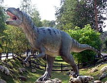 Allosaurus / ˌ æ l ɵ ˈ s ɔr ə s / is a genus of large theropod dinosaur that lived 155 to 150 million years ago during the late Jurassic period ( Kimmeridgian to early Tithonian). The name Allosaurus means "different lizard". It is derived from the Greek ἄλλος/allos ("different, other") and σαῦρος/sauros ("lizard"). The first remains that can definitely be ascribed to this genus were described in 1877 by paleontologist Othniel Charles Marsh. As one of the first well-known theropod dinosaurs, it has long attracted attention outside of paleontological circles. Indeed, it has been a top feature in several films and documentaries about prehistoric life.