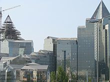 Currently under construction is 'Almaty Financial District and Esentai Park'. This was designed by T.J. Gottesdiener, who designed 7 World Trade Centre in New York City, Time Warner Centre in New York City and Tokyo Midtown. Its publicised aim is to become the largest business centre in Central Asia. Esentai Tower, a 37 floors building in the park, is the tallest mixed-use building in Kazakhstan and lodges offices of companies such as Ernst & Young, HSBC and Credit Suisse. The first Ritz-Carlton Hotel in Kazakhstan will open by the end of 2013 in Esentai Tower.