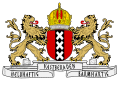 The coat of arms of Amsterdam is composed of several historical elements. First and centre are three St Andrew's crosses, aligned in a vertical band on the city's shield (although Amsterdam's patron saint was Saint Nicholas). These St Andrew's crosses can also be found on the cityshields of neighbours Amstelveen and Ouder-Amstel. This part of the coat of arms is the basis of the flag of Amsterdam, flown by the city government, but also as civil ensign for ships registered in Amsterdam. Second is the Imperial Crown of Austria. In 1489, out of gratitude for services and loans, Maximilian I awarded Amsterdam the right to adorn its coat of arms with the king's crown. Then, in 1508, this was replaced with Maximilian's imperial crown when he was crowned Holy Roman Emperor. In the early years of the 17th century, Maximilian's crown in Amsterdam's coat of arms was again replaced, this time with the crown of Emperor Rudolph II, a crown that became the Imperial Crown of Austria. The lions date from the late 16th century, when city and province became part of the Republic of the Seven United Netherlands. Last came the city's official motto: Heldhaftig, Vastberaden, Barmhartig ("Heroic, Determined, Merciful"), bestowed on the city in 1947 by Queen Wilhelmina, in recognition of the city's bravery during the Second World War.