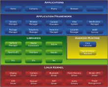 Android consists of a kernel based on Linux kernel version 2.6 and, from Android 4.0 Ice Cream Sandwich onwards, version 3.x, with middleware, libraries and APIs written in C, and application software running on an application framework which includes Java-compatible libraries based on Apache Harmony. Android uses the Dalvik virtual machine with just-in-time compilation to run Dalvik 'dex-code' (Dalvik Executable), which is usually translated from Java bytecode. The main hardware platform for Android is the ARM architecture. There is support for x86 from the Android-x86 project, and Google TV uses a special x86 version of Android. In 2013, Freescale announced Android on its i.MX processor, i.MX5X and i.MX6X series.