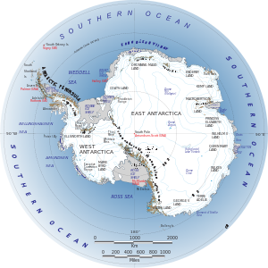 East Antarctica lies on the Indian Ocean side of the Transantarctic Mountains and comprises Coats Land, Queen Maud Land, Enderby Land, Mac. Robertson Land, Wilkes Land and Victoria Land. All but a small portion of this region lies within the Eastern Hemisphere. East Antarctica is largely covered by the East Antarctic Ice Sheet.
