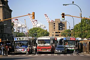 Argentina is home to around 9.2 million registered cars, trucks and buses; on a per capita basis, it has long had Latin America's widest accessibility to motor vehicles. Left-lane drivers until 1945, Argentine motorists have since been driving on the right-hand side. The Vehicle registration plates of Argentina are based on a three letters-three numbers per car (with the exception of some trucks) system.