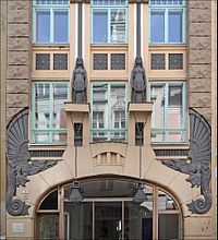 Art Nouveau architecture was popular in Riga, the capital of Latvia, during the late 19th century and the beginning of the 20th century – about 40% of the buildings from this time were built in this style. Several substyles formed during this period. Early elements of the new style were added to Eclectic architecture forming "Eclectic" Art Nouveau. "Decorative" Art Nouveau refers to style using only decorative elements of the Art Nouveau; the first such building was built in 1899, however by 1906 decorative styles had become unfashionable. Therefore the decorative style is not very widespread in Riga. Most popular style in Riga is known as "Romantic" Art Nouveau. Simplistic and modern in form, these buildings were decorated with elements from other historic styles and constitute about one-third of all buildings in central Riga. From 1905 to 1911, Latvian National Romantism peaked. While being a substyle of Art Nouveau, it copied forms of traditional architecture and incorporated traditional decorative elements. As Art Nouveau matured, emphasis on vertical lines became more popular, known as "Vertical" Art Nouveau, this style was most popular shortly before World War I. The centre of Riga is now designated as a UNESCO World Heritage site in part for its Art Nouveau architecture.