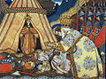 Alphonse Mucha used the style in Prague and Moravia (part of the modern Czech Republic); his style of Art Nouveau became associated with the so-called Czech National Revival. Fin de siècle sections of Prague reveal modest buildings encrusted with images of leaves and women that curve and swirl across the façades. Examples of Art Nouveau in the city, along with the exteriors of any number of private apartment and commercial buildings, are the Municipal House, the Hotel Paříž, Smíchov Market Hall, Hotel Central, the windows in the St. Wenceslaus Chapel at St. Vitus Cathedral, the main railway station, the Grand Hotel and the Jubilee Synagogue. The Olšany Cemetery and the New Jewish Cemetery are also important examples of Art Nouveau. In Czech, Art Nouveau is known as secese, a name adopted from the Austrian term "Secessionism".
