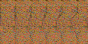 The simplest type of autostereogram consists of horizontally repeating patterns and is known as a wallpaper autostereogram. When viewed with proper vergence, the repeating patterns appear to float above or below the background. The Magic Eye books feature another type of autostereogram called a random dot autostereogram. One such autostereogram is illustrated above right. In this type of autostereogram, every pixel in the image is computed from a pattern strip and a depth map. Usually, a hidden 3D scene emerges when the image is viewed with the correct vergence.
