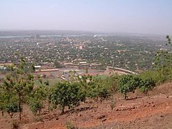 Bamako, population 1,809,106 (2009 Census, provisional), is the capital and largest city of Mali, and currently estimated to be the fastest growing city in Africa (sixth fastest in the world). It is located on the Niger River, near the rapids that divide the Upper and Middle Niger Valleys, in the southwestern part of the country. Bamako is the nation's administrative centre as well as a cercle, with a river port located in nearby Koulikoro, and a major regional trade and conference centre. Bamako is the seventh largest West African urban centre after Lagos, Abidjan, Kano, Ibadan, Dakar and Accra. Manufactures include textiles, processed meat, and metal goods. There is commercial fishing on the Niger River. Bamako is located at 12°39′N 8°0′W. The name Bamako comes from the Bambara word meaning "crocodile river".