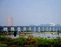 The downtown area is highly congested, polluted, and expensive, and urbanization is sprawling at a rapid pace within a radius of 30 km. The largest urbanized area now lies on the southern bank of the Niger River. A modern Central Business District is rapidly developing immediately west of the downtown area in the ACI-2000 district, taking advantage of a well-designed geometric layout, legacy of the old airport runways and taxiways. A large administrative area is being developed at the junction between ACI-2000 and the King Fadh Bridge, containing most of the state departments (ministries) and administrative services in a central location. Bamako is also the headquarters of many large companies and administrative institutions including Air Mali (formerly Compagnie Aérienne du Mali) has its head office in Bamako. Bamako received much investment by Saudi Arabia for decades which saw a number of important structures being built. In recent years, China has become an important investor in Bamako, developing its infrastructure and facilities.