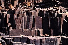Basalt is used in construction (e.g. as building blocks or in the groundwork), making cobblestones (from columnar basalt) and in making statues. Heating and extruding basalt yields stone wool, an excellent thermal insulator.