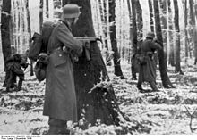 The Battle of the Bulge (also known as Ardennenoffensive, Ardennes Counteroffensive, and Rundstedtoffensive, Von Rundstedt Offensive to the Germans) (16 December 1944 – 25 January 1945) was a major German offensive launched through the densely forested Ardennes mountain region of Wallonia in Belgium, and France and Luxembourg on the Western Front towards the end of World War II. The Wehrmacht's code name for the offensive was Unternehmen Wacht am Rhein ("Operation Watch on the Rhine"), after the German patriotic hymn Die Wacht am Rhein. The French name for the operation is Bataille des Ardennes.