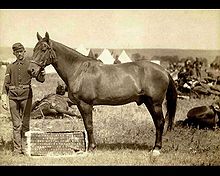 - In 1960, country singer Johnny Horton released the album Johnny Horton Makes History featuring the song "Comanche (The Brave Horse)" about the only animal from the American forces to survive the Battle of Little Big Horn. That same year Larry Verne released a comedy hit song titled "Please, Mr. Custer (I don't wanna to go)" about a fictitious cavalryman who asked Custer not to join the battle after a nightmare he experienced the night before. This song was later re-recorded by Marty Robbins.
