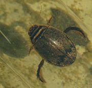 - Adephaga contains about 10 families of largely predatory beetles, includes ground beetles (Carabidae), Dytiscidae and whirligig beetles (Gyrinidae). In these beetles the testes are tubular and the first abdominal sternum (a plate of the exoskeleton) is divided by the hind coxae (the basal joints of the beetle's legs).
