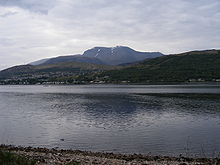 ![]() Ben Nevis from Banavie. The summit is beyond and to the left of the apparent highest point |