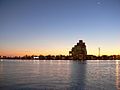 Benghazi was heavily bombed during World War II, and so the majority of buildings in the city are examples of modern or contemporary architecture. The central business district was built mostly in the 1960s and 1970s with Libya's new found oil wealth. The highest building in Benghazi is the Tibesti Hotel on Gamal Abdel Nasser Street built in 1989. Another prominent example of modern architecture in Benghazi is the Da'wah al-Islamiyah Building, which has a series of distinctive cubes piled in the shape of a pyramid.