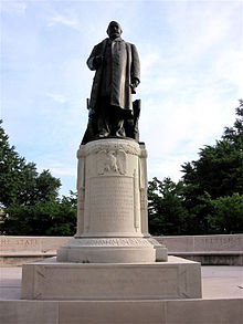 In 1908, the people of Indianapolis erected the Benjamin Harrison memorial statue, created by Charles Niehaus and Henry Bacon, in honour of Harrison's lifetime achievements as military leader, U.S. Senator, and President of the United States.