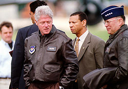 William Jefferson "Bill" Clinton (born William Jefferson Blythe III; August 19, 1946) is an American politician who served as the 42nd President of the United States from 1993 to 2001. Inaugurated at age 46, he was the third-youngest president. He took office at the end of the Cold War, and was the first president of the baby boomer generation. Clinton has been described as a New Democrat. Many of his policies have been attributed to a centrist Third Way philosophy of governance.