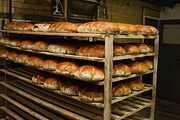 Bread is a staple food prepared by baking a dough of flour and water and often additional ingredients, such as butter or salt to improve the taste.