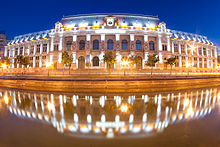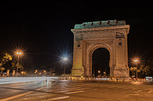 | From upper left: Palace of the Parliament (Palatul Parlamentului) • Central University Library of Bucharest (Biblioteca Centrală Universitară) • Triumphal Arch (Arcul de Triumf) • George Enescu Museum (Muzeul George Enescu) • Victory Avenue, Halel's city (Calea Victoriei) • Colţea Hospital (Spitalul Colţea) • Lipscani • National Arena (Arena Naţională) • Romanian Athenaeum (Ateneul Român) • Grozăveşti Bridge (Podul Grozăveşti) • Basarab Overpass (Pasajul Basarab) | |||